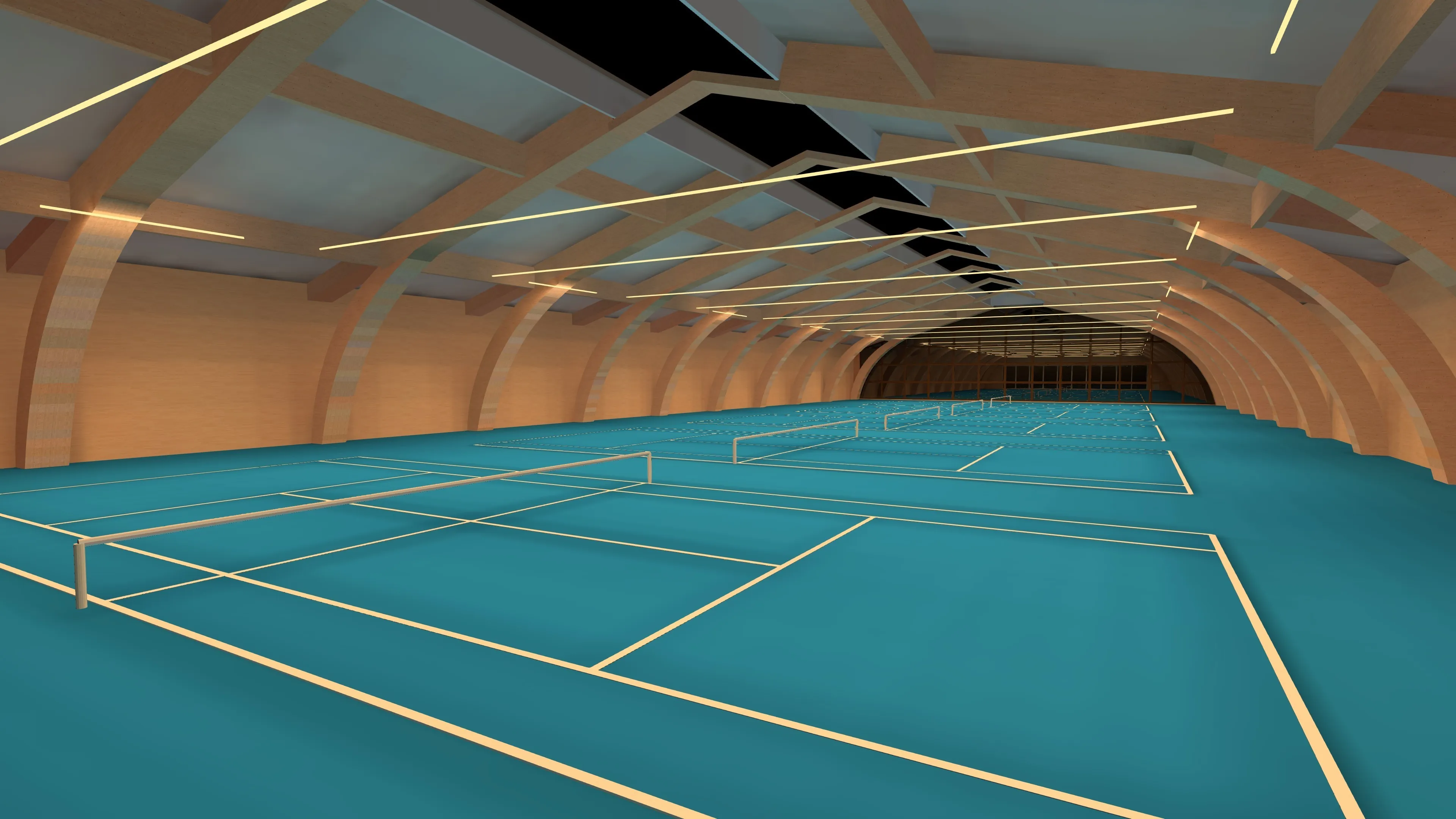 bei dieser Planung wurde eine 5 Feld Tennishalle, nach Vorgaben der Beleuchtungsklasse II geplant