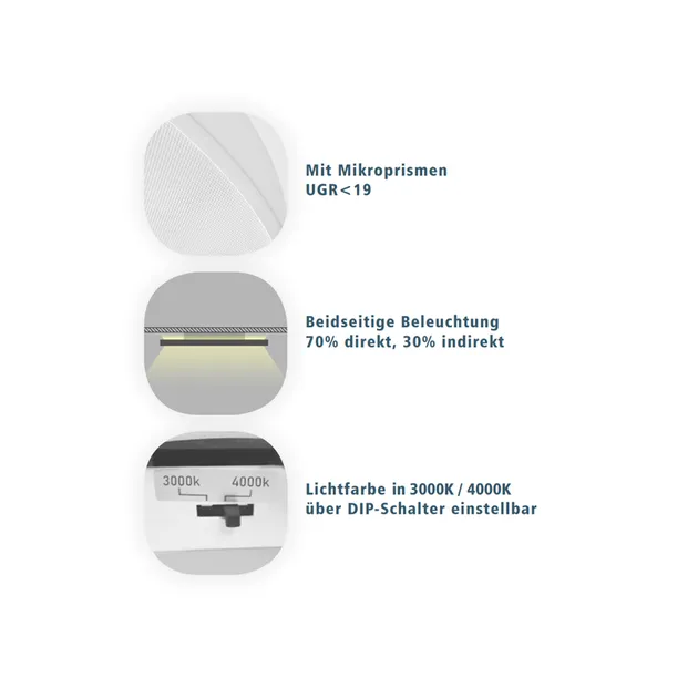 Dank integrierter Mikroprismenoptik erreicht das Circle einen UGR-Wert <19, was eine besonders blendfreie Beleuchtung gewährleistet – ein entscheidender Vorteil für Bildschirmarbeitsplätze, an denen ermüdungsfreies und konzentriertes Arbeiten gefragt ist.