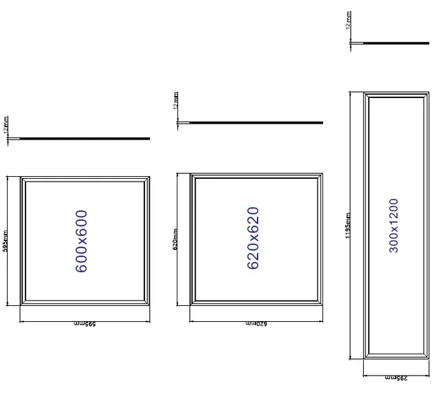 Leistung/power [W]: 40 | 36 | 36 Farbtemperatur/color temperature [Kelvin]: 4000-4500K Farbwiedergabeindex/color rendering index [CRI> Ra]: CRI>80 Abstrahlwinkel/beam angle [>°]: 120° Aufwärm-Startzeit/warming-start time (60%) [s][s]: < 0,50 - < 0,5 LED-Chip [Typ]: 4014 SMD LED Effizienz/efficiency [lm/w]: ca. 110lm/w Eingangsspannung/input voltage [Volt]: 27-42V DC / 900mA Frequenz/frequenzy [Hertz]: 50-60 Hz Montageart: Einbau, Hängend oder Aufbau (zzgl. Rahmen!) Kabellänge: ca. 30cm Leistungsfaktor/power factor [PF]: > 0,95 Dimmbar/dimmable - Schnittstelle/interface: nicht dimmbar (IP20 oder IP65), (auf Anfrage: 0/1-10V, DALI - nur IP20) Betriebstemperatur/operating temperature [°C]: -20°C bis +50°C Lagertemperatur/storage temperature [°C]: -30°C bis +60°C IP-Schutzklasse/IP protection [IP]: IP65 (Panel), IP20 (Netzteil - auf Anfrage auch IP65 nicht dimmbar möglich) | IK Schlagschutz [IK]: 06 Schutzklasse/electrical protection class[SKL]: III Zertifizierungen/certifications: CE, RoHS, Energieeffizienzklasse/energy class [EEK]: A+ Nennlebensdauer/lifetime [h]: > 50.000 Gehäuse/housing - Farbe/color : Aluminium - Weiß RAL 9016 Optik/optics - Farbe/color : Polycarbonat, Wabenoptiken Quecksilberfrei/mercury free : ja/yes Leuchtentyp/light type : LED Panel Sockeltyp/socket type : Leuchtmittel integriert Produkt/product LxBxH-H [mm]: 620 × 620 × 12 | 1200 × 300 × 12 | 600 × 600 x 12 Gewicht netto/net weight [kg]: 3,7 | 3,7 | 3,5 Garantie/warranty [Jahr/year]: 5 Jahre |